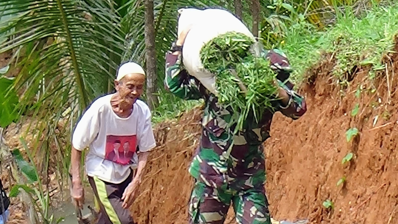 Di tengah kesibukannya melaksanakan program pembangunan infrastruktur dan pemberdayaan masyarakat, seorang anggota TNI dari Kodim Pangandaran dengan sigap membantu seorang warga lanjut usia yang kesulitan membawa rumput pakan ternaknya. Momen ini terjadi saat prajurit tengah berada di lokasi pengerjaan program TMMD.