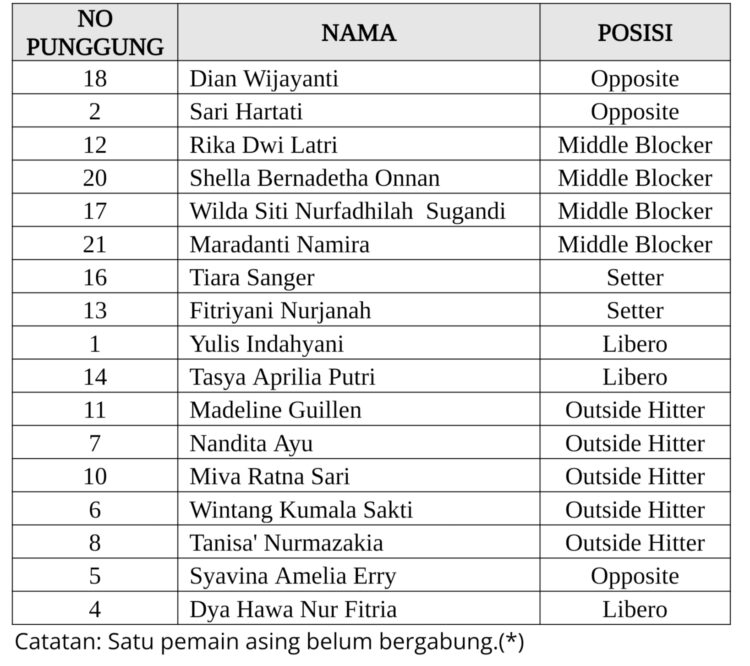 Selain menghadapi Gresik Petrokimia pada laga pembuka, Wilda Siti Nurfadhilah dan kawan-kawan juga akan meladeni tantangan tim debutan Jakarta BIN, pada Senin 8 Januari 2023.
