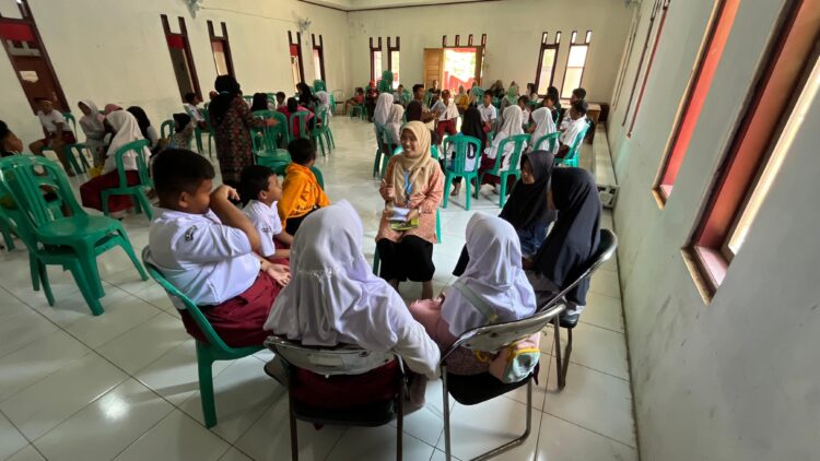 Acara ini juga menghadirkan pemateri Kak Alfi Fahimiah, Duta Baca Jawa Barat, yang mempraktikkan teknik membaca nyaring dengan penuh ekspresi. Siswa-siswa SD yang hadir terlihat antusias mengikuti kegiatan ini, mendengarkan dengan penuh perhatian saat Kak Alfi membacakan buku.