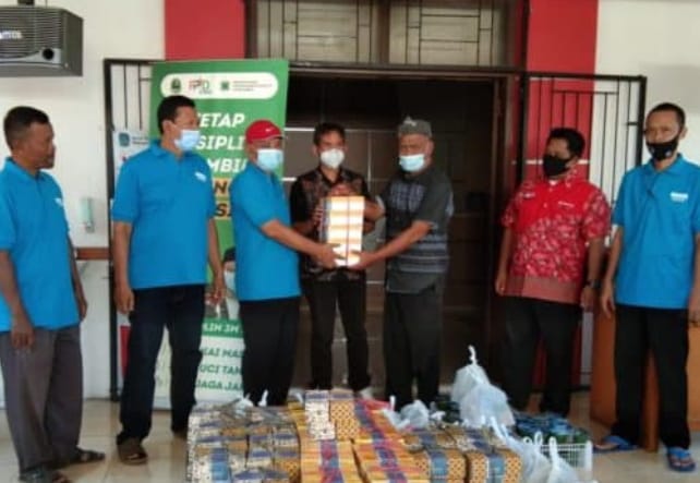 Anggota DPRD Pangandaran Rd. Tata Sutari, SE. dan Staf Sekretariat DPRD menyerahkan nasi kotak dan takjil buka puasa kepada Kepala Desa Parigi.