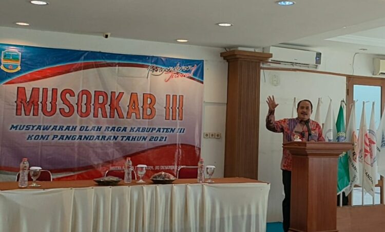 PANGANDARAN-Bupati Pangandaran membuka Musyawarah Olah Raga Kabupaten (Musorkab III) KONI Pangandaran 2021 bertempat di aula Hotel Surya Transera Pangandaran.