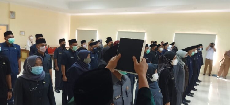 KABARPANGANDARAN.COM – Bupati Pangandaran Jeje Wiradinata melantik 180 Pejabat Fungsional di lingkungan Pemerintahan Kabupaten (Pemkab) Pangandaran, Senin, (5/4/2021).