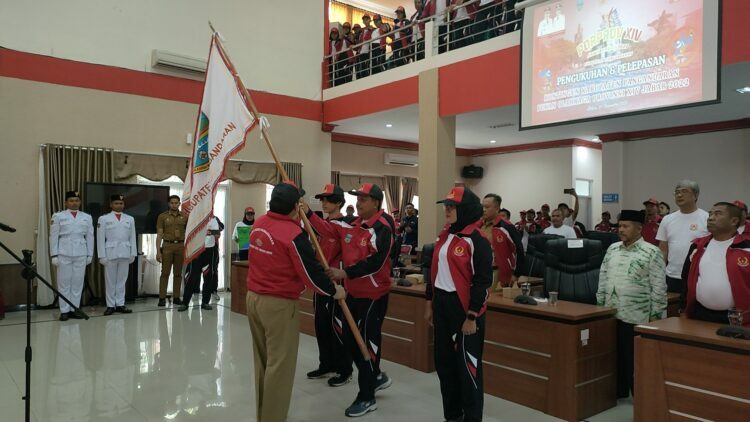 KABARPANGANDARAN – Pemerintah Daerah Kabupaten Pangandaran mengukuhkan dan melepas kontingen atlet yang akan berlaga di Pekan Olahraga Provinsi (PORPROV) XIV Jawa Barat di Gedung DPRD Pangandaran, Selasa, 1 November 2022.