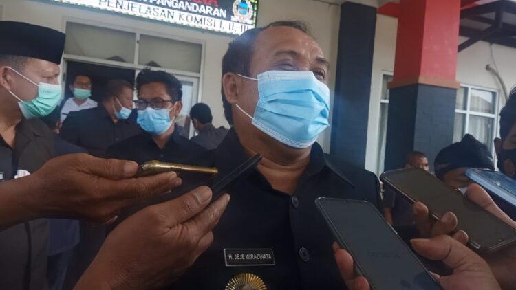 KABARPANGANDARAN.COM – Bupati Pangandaran Jeje Wiradinata pada saat rapat Paripurna DPRD Pangandaran dari empat ada dua Raperda yang harus dibahas terlebih dahulu, yaitu Raperda Cadangan Pangan dan Raperda Perpustakaan, Senin, 31 Mei 2021.