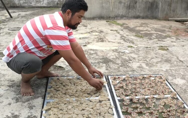Untuk proses pengolahan dalam satu hari dirinya berhasil memproduksi kerupuk dengan bahan baku adonan sebanyak 5 kilogram.
