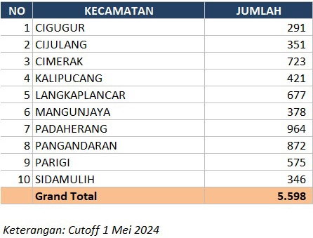 Kepala Dinas Kependudukan dan Catatan Sipil (Disdukcapil) Kabupaten Pangandaran, Yadi Setiadi mengatakan berdasarkan catatan ada 7.080 orang yang belum melakukan perekaman KTP elektronik, ada 7.297 orang warga yang berstatus wajib KTP.