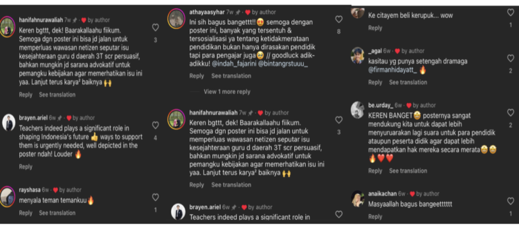 Berikut ini berbagai komentar positif yang banyak bermunculan di media sosial Instagram yang menjadi tempat penyebarluasan poster.