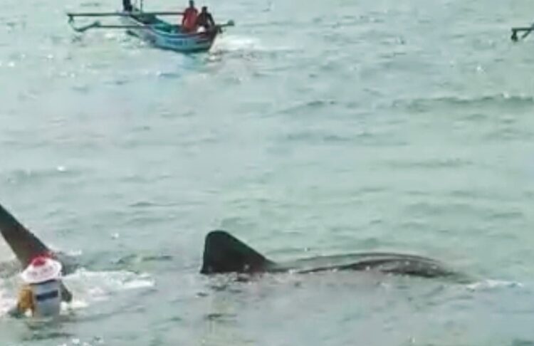 “Saya kira ada apa,ternyata mereka sedang menolong ikan Hiu Tutul besar yang terdampar ke pinggir pantai,” katanya.