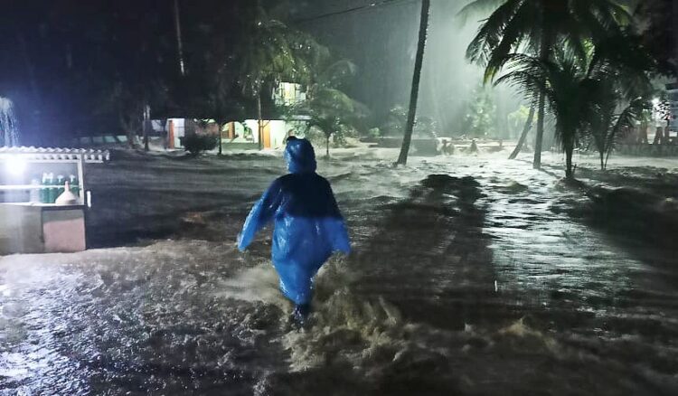 KABARPANGANDARAN – Hujan deras di wilayah Kabupaten Pangandaran sejak sore menyebabkan air meluap hingga ke jalan selutut orang dewasa di Dusun Cibeureum Rt 01/09 Desa Sidamulih Kecamatan Sidamulih dari pukul 20.00 Wib dan sudah surut pada sekitar pukul 21.30 Wib, Minggu, 11 September 2022.