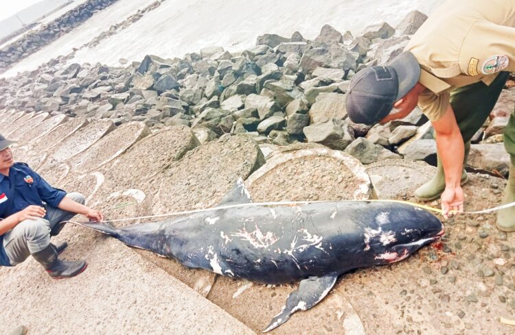 KABAR PANGANDARAN – Ikan Lumba Lumba jenis Liso Betina Dewasa dengan panjang 225 meter berat 95 kilogram,ditemukan terdampar sekitar pukul 10.45 Wib di Pantai Timur Pangandaran, Rabu, 21 Agustus 2024.