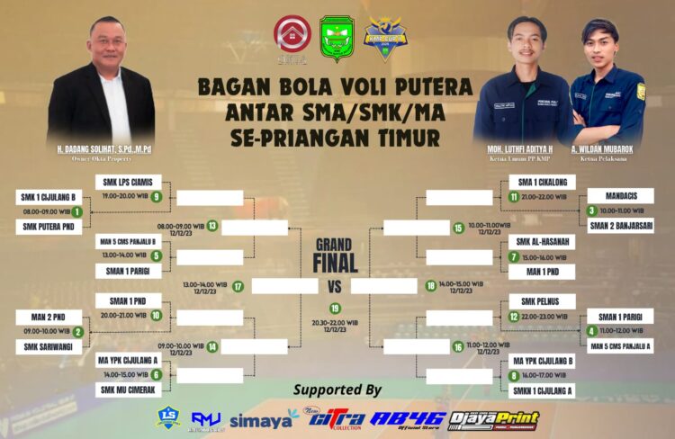 Ketua Penyelenggara Wildan Mubarok mengatakan Kejuaraan Invitasi Bola Voli Putra Putri KMP Cup II 2023 antar SMA/SMK/MA Se Priangan Timur diselenggarakan oleh Keluarga Mahasiswa Pangandaran ( KMP ).