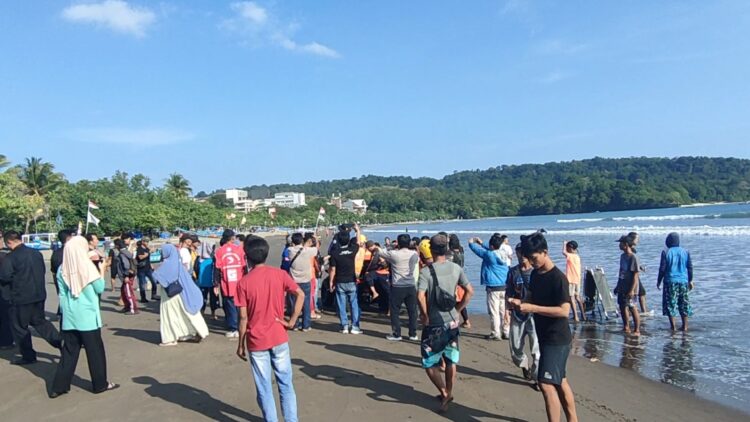KABAR PANGANDARAN – Saat tim penyelam dari Pangandaran Dive Club melakukan penyelaman dalam pencarian seorang pelajar asal Bandung yang hilang terseret arus, tiba-tiba ada wisatawan asal Mangkubumi Tasikmalaya saat sedang berfoto bersama teman-temannya di Pantai Pangandaran di kagetkan dengan benda aneh muncul persis di depannya, dan ternyata setelah mendekat terlihat tangan manusia dengan posisi telungkup yang terbawa ombak ke bibir pantai, Kamis, 13 Juni 2024.