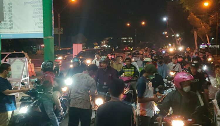 PANGANDARAN- Menjelang pergantian malam tahun baru 2022 situasi kendaraan pengunjung yang akan masuk ke obyek wisata pantai pangandaran didominasi kendaraan roda 2 di pintu masuk tol gate pantai Barat Pangandaran pada pukul 21.00 WIB, Jumat, 31 Desember 2021.