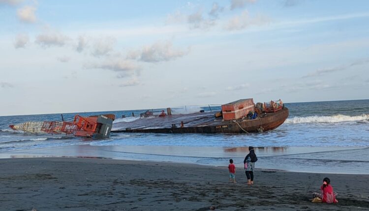 “Akhirnya kapal tongkang hanyut dan mengandaskan tongkang di pinggir pantai Bojong Salawe,” katanya.