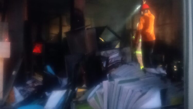 Kebakaran di kantor yang terletak di Jalan Raya Desa Karangbenda, Kecamatan Parigi itu diketahui sekira pukul 16 WIB.