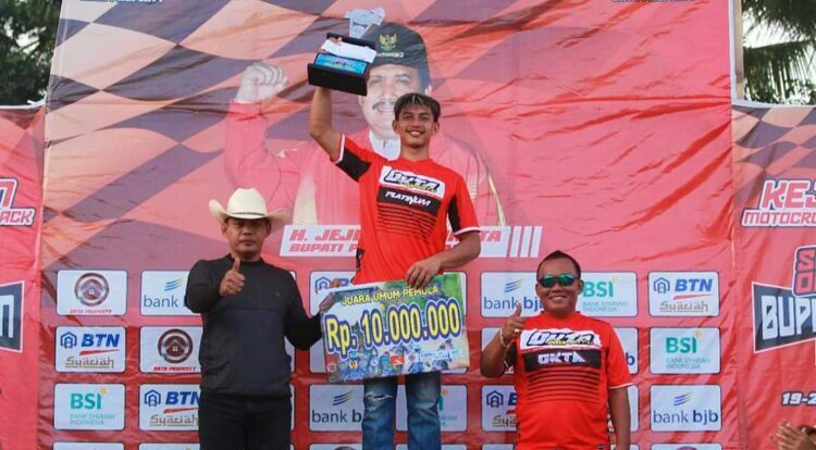 KABARPANGANDARAN – Kejuaraan Bupati Pangandaran Cup Open 2022 Motocross dan Grasstrack yang digelar di Sirkuit Okta Parigi dari tanggal 7 sampai 8 Mei 2022 berjalan dengan lancar, Crosser asal Pangandaran Dadan KR menjadi juara umum pemula, Senin, 9 Mei 2022.