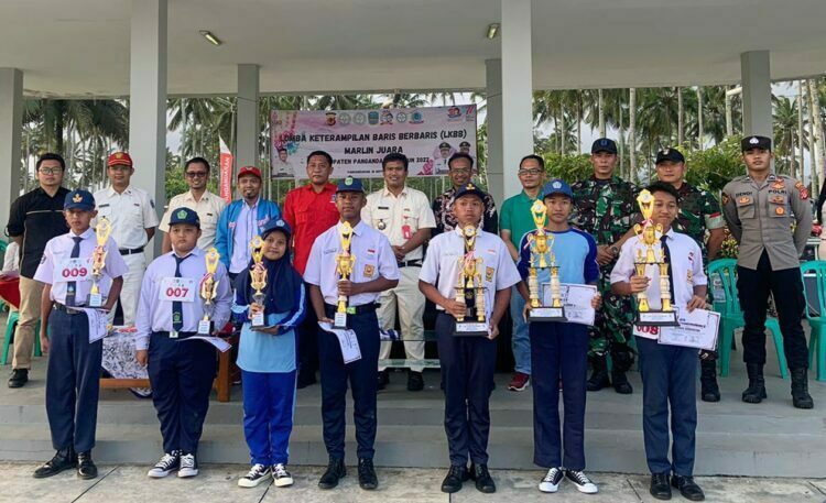 KABARPANGANDARAN – Lomba Ketrampilan Baris Berbaris (LKBB) yang diikuti oleh peserta dari SMP/MTS/Sederajat sejumlah 10 Regu dan peserta dari SMA/SMK/MA/Sederajat sejumlah 17 Regu se Kabupaten Pangandaran memperebutkan Marlin Juara tahun 2022 yang dilaksanakan di Alun Alun Paamprokan Pangandaran.