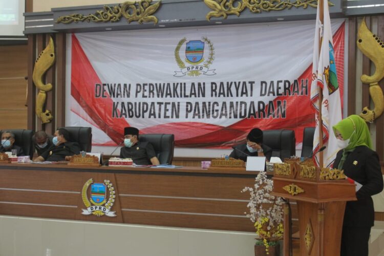 KABARPANGANDARAN.COM – Ketua Komisi III DPRD Pangandaran, Ade Ruminah, menyampaikan pandangan perihal hasil Rapat Paripurna — pada hari Jumat, 28 Mei 2021 — yang telah menetapkan rancangan peraturan daerah inisiatif komisi III DPRD Kabupaten Pangandaran tentang Retribusi Penyediaan