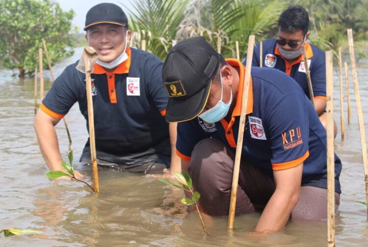 KABARPANGANDARAN.COM – Setelah sukses menyelenggarakan Pemilihan Kepala Daerah (Pilkada) serentak tahun 2020, jajaran Komisi Pemilihan Umum (KPU) Pangandaran menggelar bakti sosial penanaman mangrove.
