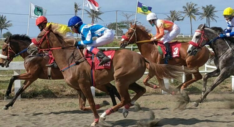 PANGANDARAN-Pelaksanaan Pacuan Kuda Piala Derby 2021 yang diselenggarakan oleh Pengda Pordasi Jawa Barat Pangandaran bertempat di lapang Pacuan Kuda Legok Jawa Cimerak salah satu upaya dalam rangka persiapan Pekan Olah Raga Nasional (PON) 2024 mendatang, Sabtu, 4 September 2021.