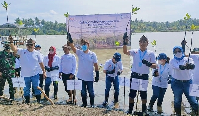 Dalam rangka 2 Dekade Gerakan APU PPT Indonesia, bank bjb kolaboraksi penanaman 2061 pohon Mangrove dari 10.000 pohon Mangrove pada tahun 2022 ini, bertempat di Tanjung Cemara Pantai Karang Tirta Pangandaran, Rabu, 25 Mei 2022.