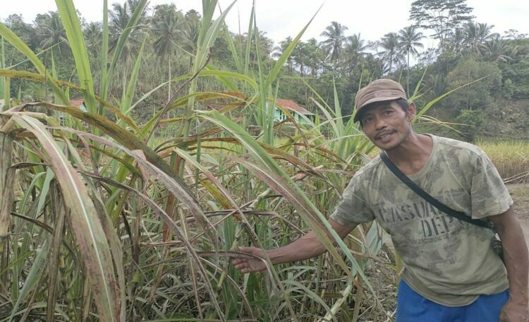 KABARPANGANDARAN – Para pembudidaya tanaman sayuran mirip dengan pohon tebu ini atau Turubuk pasca terjadinya banjir di blok Cikubang Dusun Cicurug Desa Bunisari Kecamatan Cigugur merugi pasalnya selain akses jalan yang terendam ternyata banyak kebun turubuk warga menjadi busuk karena ikut terendam banjir selama satu minggu, Jumat, 30 September 2022.