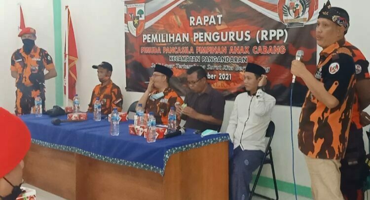 PANGANDARAN-Ketua Majelis Pimpinan Cabang Pemuda Pancasila Kabupaten Pangandaran Eko Suwartono membuka secara resmi Rapat Pemilihan Pengurus (RPP) Pemuda Pancasila Pimpinan Anak Cabang (PAC) Kecamatan Pangandaran bertempat di aula Hidayatus Sholawat Desa Sidomulyo, Minggu, 17 Oktober 2021.