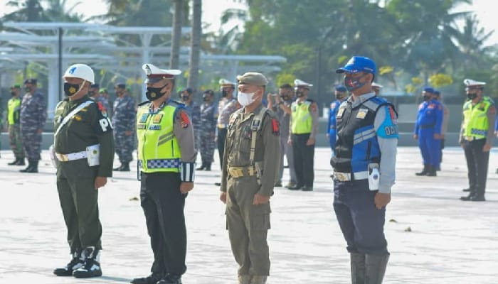 Bupati Pangandaran, Jeje Wiradinata memimpin pelaksanaan apel gelar pasukan operasi ketupat lodaya tahun 2021 di Alun Alun Paamprokan, Jalan. Pamugaran, Desa Wonoharjo, Kecamatan Pangandaran, Kabupaten Pangandaran.