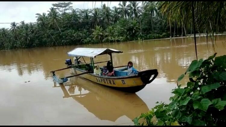 “Kondisinya sedang banjir, sehingga untuk membawa keranda jenazah pun harus diangkut menggunakan perahu,” tuturnya.