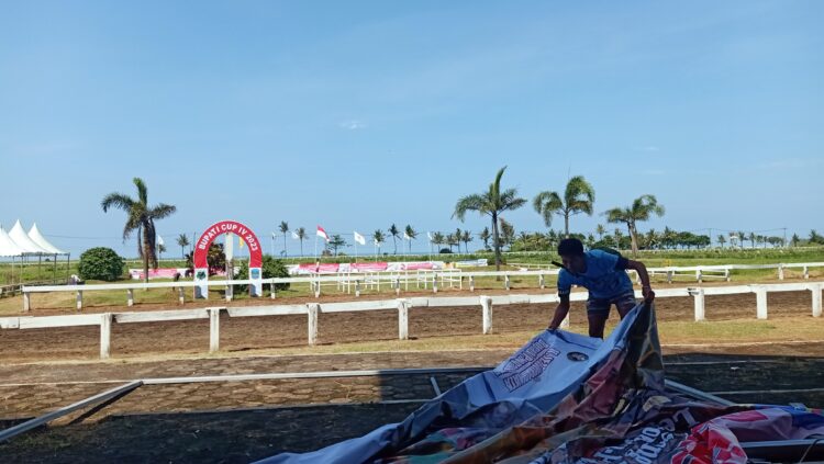 Persiapan Panitia Penyelenggara Kejuaraan Pacuan Kuda Bupati Pangandaran Cup IV 2023 di Gelanggang Pacuan Kuda Legokjawa Cimerak.Jumat,5 Mei 2023,(M Jerry/KP).