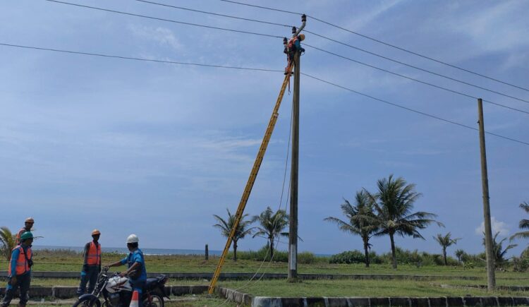 KABARPANGANDARAN – Menjelang persiapan dalam menghadapi libur Natal dan Tahun Baru 2022/2023 PLN Unit Layanan Pelanggan Pangandaran melaksanakan pekerjaan pemeliharaan Gardu Induk 70 kV dan penggantian konstruksi yang sudah berkarat seperti yang sedang dilaksanakan di sepanjang pantai Barat Pangandaran – Pamugaran blok Kampung Turis, Kamis, 15 Desember 2022.