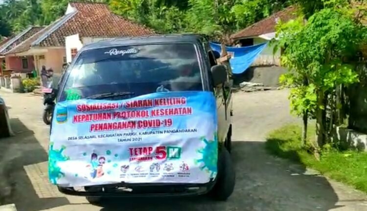 Kepala Desa Selasari Udin Tugaswara mengatakan menindaklanjuti instruksi Bupati Pangandaran tentang Pemberlakuan Pembatasan Kegiatan Masyarakat (PPKM) Darurat Pandemi Covid-19 maka dari itu pihaknya terus melakukan sosialisasi kepada masyarakat.