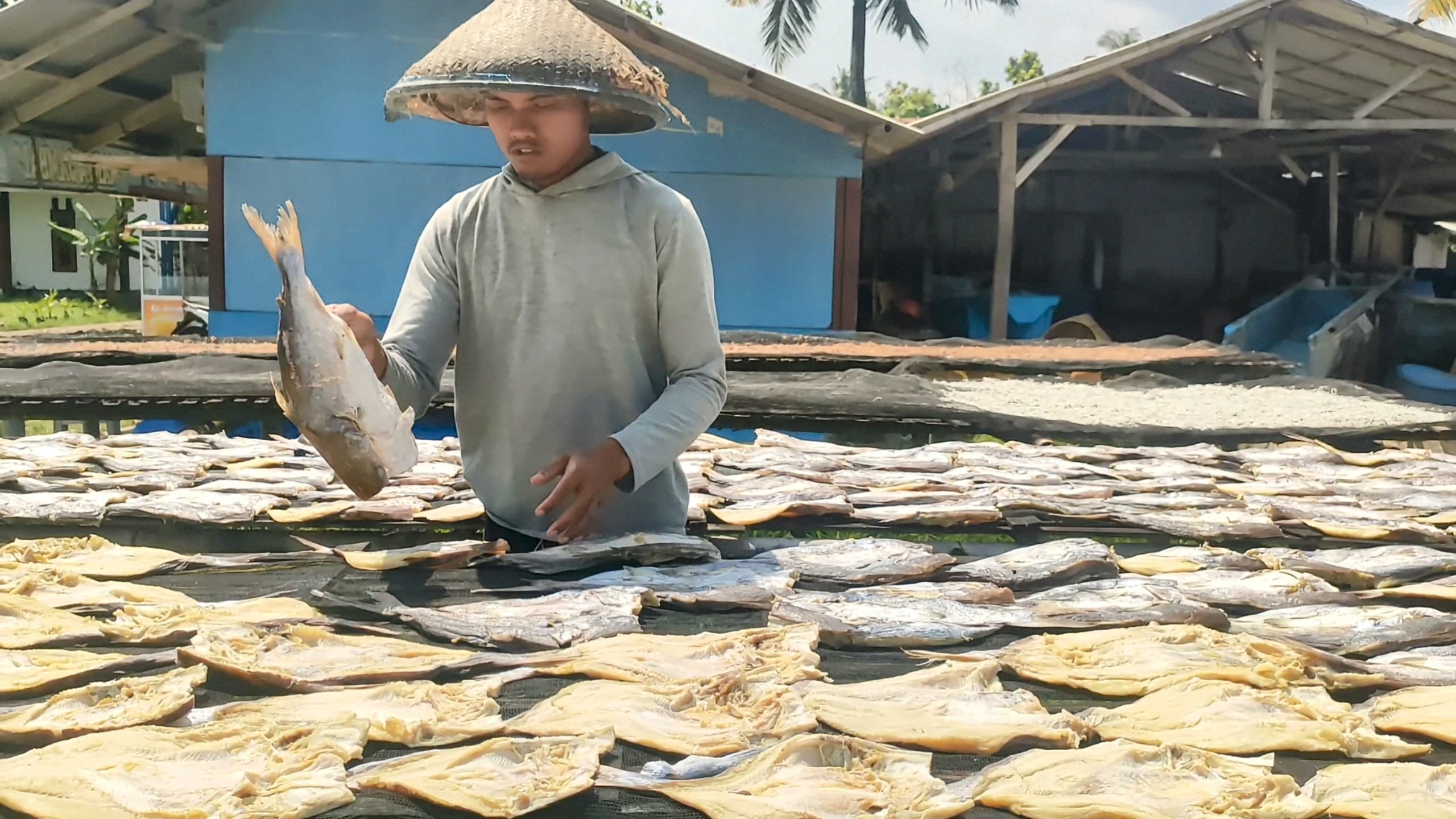Ikan yang sudah direndam kemudian dijemur di bawah sinar matahari selama beberapa hari, tergantung pada kondisi cuaca. Proses penjemuran ini bertujuan untuk mengurangi kadar air dalam ikan sehingga daya tahannya lebih lama.