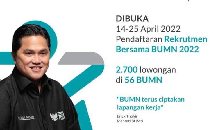 PANGANDARAN-Kabar gembira khususnya bagi warga masyarakat di Kabupaten Pangandaran yang belum bekerja tetapi lulusa Diploma,S1 dan S2 Kementrian BUMN lagi membutuhkan untuk di 2.700 posisi di 56 BUMN, melalui Rekruitmen Bersama BUMN 2022 pastikan mengeksplorasi peluang karir yang tersedia diberbagai BUMN.