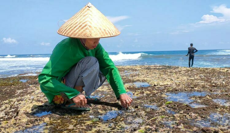 Begitu juga seorang Bapak Bapak sedang mencari agar agar ditepi tepi karang dan hasilnya juga dijual.