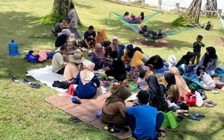 Seperti di obyek wisata Pantai Batu Hiu, mereka baik itu pengunjung lokal ataupun luar daerah menggelar tikar membuka perbekalan dari rumah begitu juga ada yang bakar-bakar ikan atau ayam bersama keluarga di Bukit Batu Hiu.