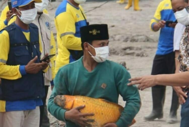 Kejadian yang sangat langka saat terjadi bencana Erupsi Gunung Semeru di Kabupaten Lumajang Jawa Timur ada seekor ikan mas yang selamat dati awan panas guguran (APG) Gunung Semeru pada Sabtu, 4 Desember 2021 lalu.