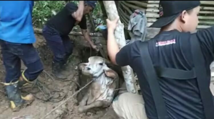 Setelah kurang lebih 3 jam proses evakuasi akhirnya berhasil dilakukan dengan kondisi sapi selamat.***
