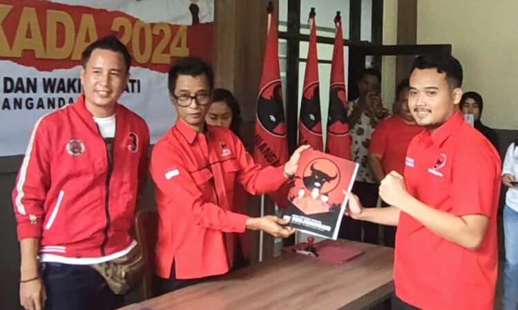 Arief Hikmawan Wiradinata Mendaftar Bacalon Bupati/Wakil Bupati Pangandaran Ke Sekretariat DPC PDI Perjuangan Pangandaran,Kamis,18 April 2024.(M Jerry/KP).