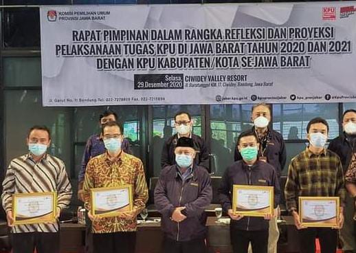 Menurutnya penyerahan penghargaan tersebut pada saat dilaksanakan pada rapat pimpinan dalam rangka refleksi dan proyeksi pelaksanaan tugas KPU di Jawa Barat tahun 2020 dan 2021 dengan KPU Kabupaten /Kota di Jawa Barat, di Bandung.