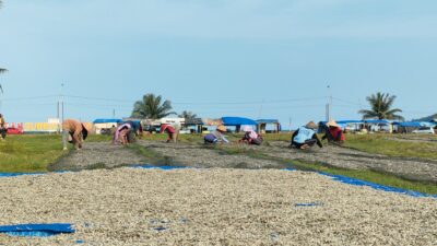 Lapang Katapang Doyong Jadi Tempat Penjemuran Ikan Layang Saat Sedang Musim