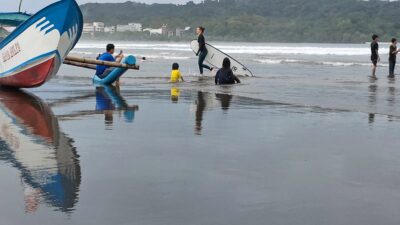Turis Asing Belajar Surfing
