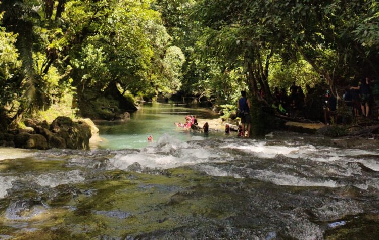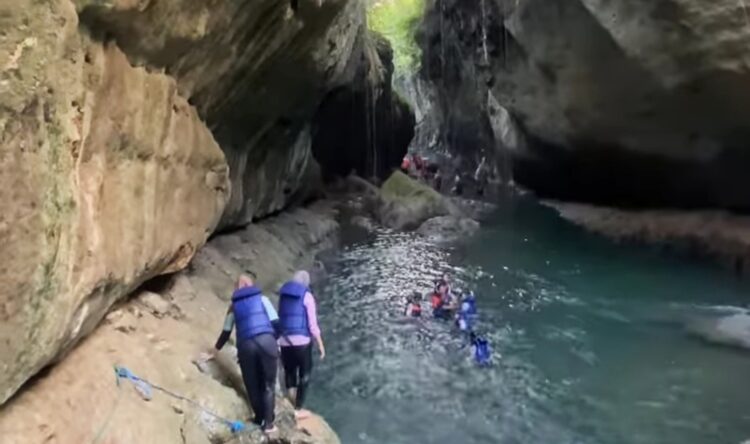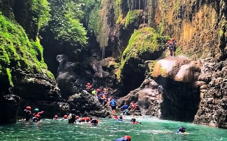 Disini wisatawan dapat mencoba nyali menikmati keindahan sungai berdinding karang.