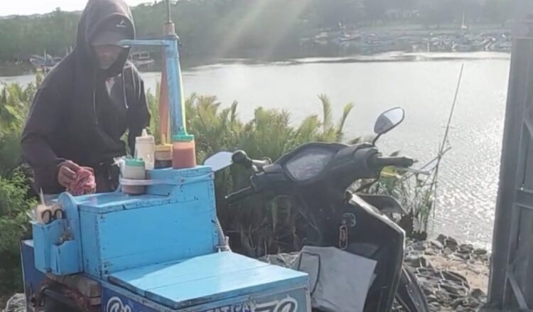 PANGANDARAN-Setelah tersambungnya pembangunan jembatan baru yang melintasi Sungai Sodong kopo Nusa wiru Cijulang walau hanya jembatan sementara dengan menggunakan Bailey kini sudah trending di berbagai media sosial, disisi lain membawa berkah bagi pedagang cilok, Senin, 24 Januari 2022.