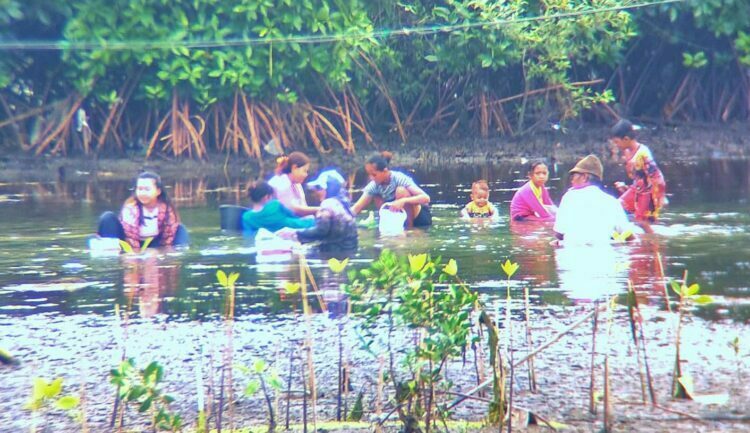 “Biasanya saya melaut tapi karena sedang menganggur menyempatkan berburu kerang di dekat Muara Sungai Bojong Salawe ini,” katanya.